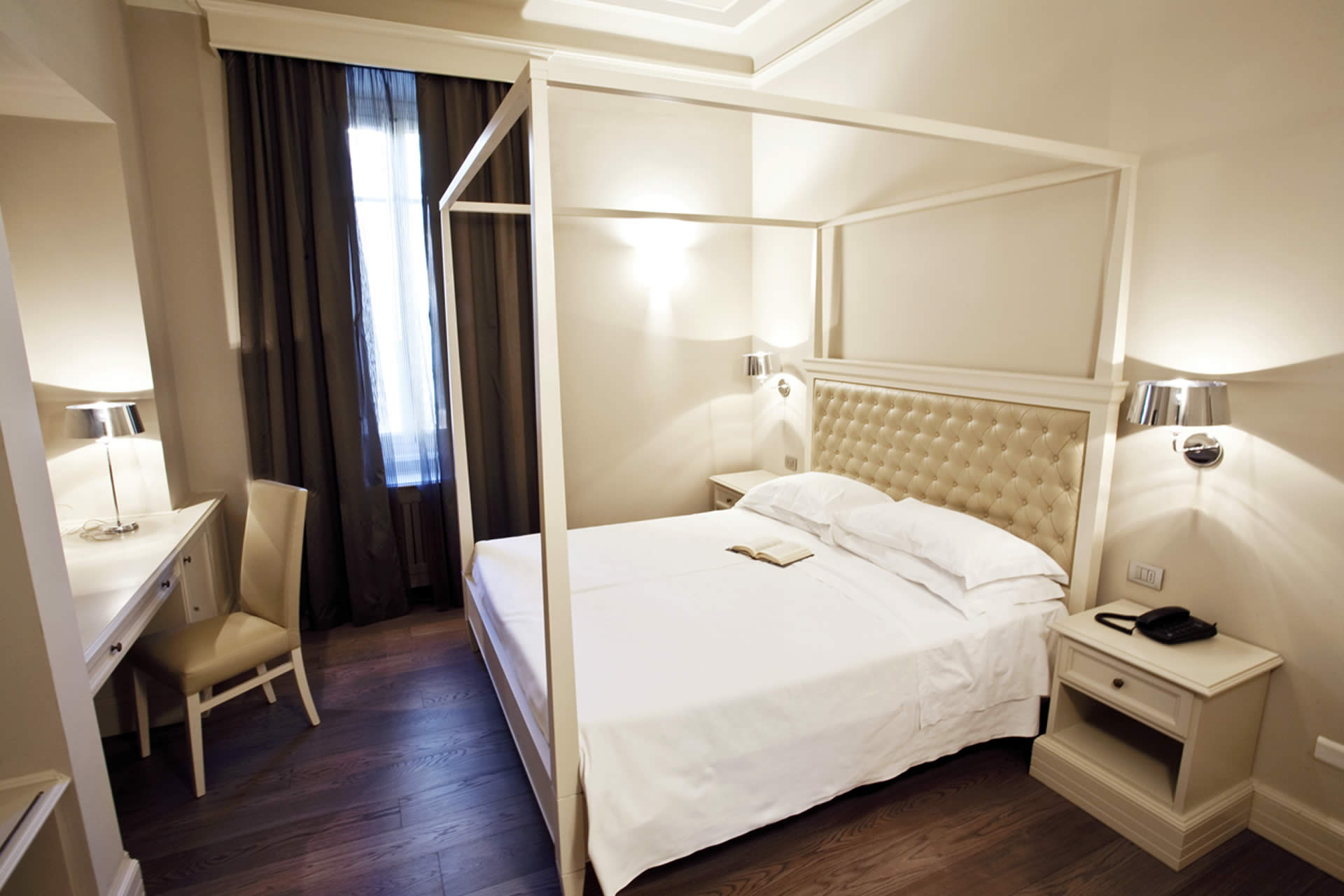Questa è una lussuosa camera dal design moderno; sono state tutte recentemente ristrutturate, le finestre insonorizzate garantiscono ulteriore tranquillità. Per conferire ogni comfort sono dotate di accappatoi, pantofole, tisareria e bollitore